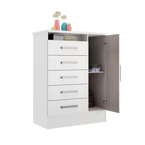 Com a Comoda Aurora Rodial voce podera ter a elegancia e a funcionalidade que tanto procura em um unico movel! Com 5 gavetas espacosas e uma porta de abrir, essa comoda oferece um espaco amplo e organizado para guardar suas roupas e acessorios.