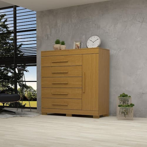 Desfrute da elegância e praticidade da cômoda Bahamas, feita com 100% de MDF de alta qualidade. Com 5 gavetas equipadas com corrediças telescópicas suaves, você terá acesso rápido e fácil aos seus pertences. Além disso, possui um espaçoso sapateiro integrado para manter seus calçados organizados. Os puxadores em MDF revestido complementam o design sofisticado, proporcionando um toque de estilo a cada detalhe. Experimente a combinação perfeita de funcionalidade e beleza com a cômoda Bahamas.