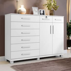 O(a) Cômoda Bali 8 Gavetas 2 Portas Branco - Pnr Móveis é produzido em MDP na escala de brilho Fosco, e possui um grau de dificuldade de montagem: Médio.