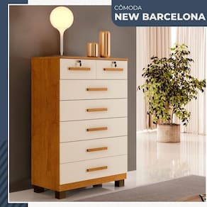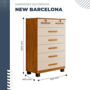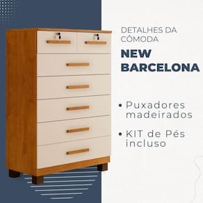 A Cômoda Barcelona completa seu quarto com muito charme e beleza, possui 7 gavetas muito espaçosa sendo 1 com chave com corrediças telescópica que dá muita suavidade e resistência, ainda conta com 2 portas e 2 prateleiras.