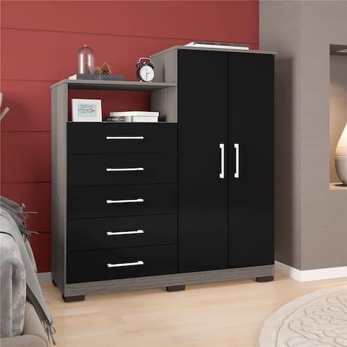 Deixe seu quarto mais bonito e organizado com a Cômoda Bartira Cambuci com 5 Gavetas e 2 Portas!