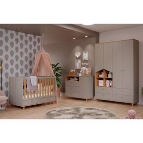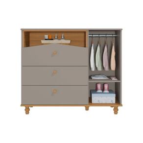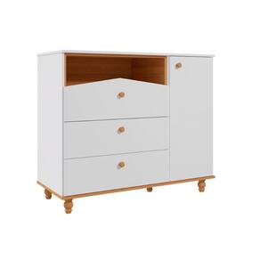 Cômoda Infantil Casinha 3 Gavetas e 1 Porta Branco/Nature - Permóbili Baby