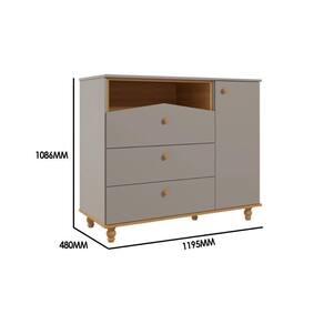 Cômoda Infantil Casinha 3 Gavetas e 1 Porta Branco/Nature - Permóbili Baby