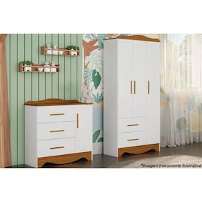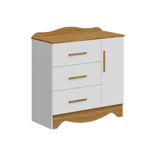 Cômoda Infantil Clara c/ 1 Porta Lisa e 3 Gavetas Branco/Amendoa - Peroba Marca: Móveis Peroba