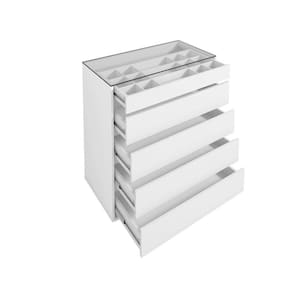 Funcional e elegante, a Cômoda Belize conta com tampo de vidro temperado de 8mm, que traz leveza e modernidade ao design. Para mais pde, oferece gavetas com corrediças telescópicas e uma colmeia organizadora na ira gaveta, perfeita para manter tudo no seu lugar com muito estilo.