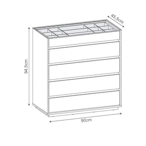 AS IMAGENS SÃO MERAMENTE ILUSTRATIVAS E PODEM SOFRER VARIAÇÕES DE COR E PEQUENOS DETALHES DE ACORDO COM O SEU MONITOR, ILUMINAÇÃO DO AMBIENTE E ATÉ MESMO A SUA PERCEPÇÃO Ãmoda Belize VersÃtile com 5 Gavetas e Organizador Tampo de Vidro 90cm Branco