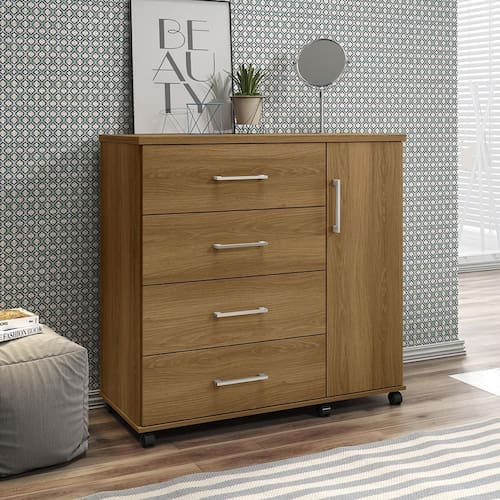 Cômoda, Cômoda Belle, Cômoda 4 Gavetas, Sapateira, Móveis para Quarto, Organização, Lukaliam Móveis, Amêndoa, Puxadores MDF, Corrediças Telescópicas, Gaveta com Chave, Design Sofisticado, Modernidade.