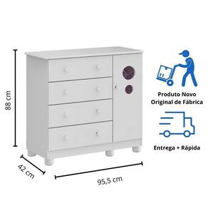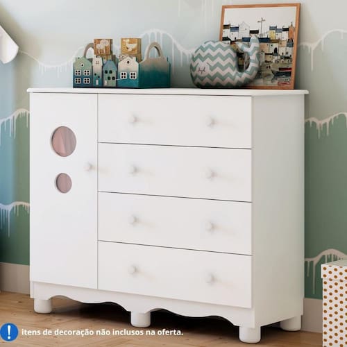 É uma cômoda infantil com 4 gavetas e 1 porta.
