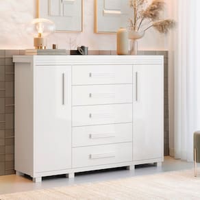 Cômoda Sapateira Branca em MDF com 5 Gavetas e 2 Portas – Opções de Montagem Diferenciadas Transforme seu ambiente com a elegante e funcional Cômoda Sapateira Branca em MDF. Este móvel versátil combina sofisticação e praticidade, sendo ideal para organizar roupas, sapatos e acessórios. Características Principais: Material de Alta Qualidade: Fabricada em MDF de alta resistência, garante durabilidade e acabamento impecável. Design Funcional: Com 5 gavetas espaçosas e 2 portas, oferece amplo espaço para armazenamento. As gavetas possuem reforço no fundo, proporcionando maior suporte para itens pesados. Prateleiras Móveis: Inclui 4 prateleiras ajustáveis, permitindo personalizar o espaço interno conforme suas necessidades. Pés em Madeira: Pés robustos em madeira, assegurando estabilidade e um toque de elegância. Opções de Montagem: Oferece duas opções de montagem diferenciadas, adaptando-se ao seu espaço e preferências de design. Acabamento Branco: O acabamento branco traz um ar de modernidade e frescor ao ambiente, combinando facilmente com diversos estilos de decoração. Benefícios Adicionais: Organização Eficiente: Ideal para quem busca um móvel multifuncional que otimize o espaço e mantenha tudo em ordem. Versatilidade: Perfeita para quartos, closets, corredores e até mesmo escritórios, adaptando-se a diferentes ambientes. Montagem Simples: Acompanha manual detalhado para facilitar a montagem, mesmo com as opções diferenciadas de configuração. Invista em uma peça que une design, qualidade e funcionalidade. A Cômoda Sapateira Branca em MDF com 5 Gavetas e 2 Portas é a escolha perfeita para quem deseja organizar e decorar o ambiente com bom gosto. Informação Importante - AS IMAGENS SÃO MERAMENTE ILUSTRATIVAS.