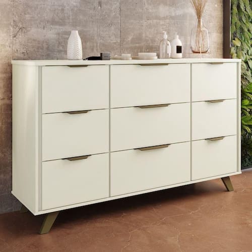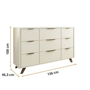 Cômoda Buffet 9 Gavetas Olimpia 100% Mdf Móveis Europa Off White Off White Cômoda Buffet 9 Gavetas Olimpia 100% mdf Móveis Europa Off White A comoda buffet olimpia 9 gav 100% mdf é elegante e sofisticada. Foi desenvolvida pensando para ter praticidade com 9 gavetas com corrediças telescópicas com amplo espaço e um lindo puxador embutido na cor bronze. Possui tampo reforçado em mdf25mm para acomodar, bebidas, taças ou decorações. Fabricada em mdf, com pés cônicos em madeira maciça, dando charme e durabilidade ao produto.DIMENSÕES Altura: 100 cm Largura: 136 cm Profundidade: 46,3 cmCARACTERÍSTICAS Acabamento Da Gaveta: Acabamento em verniz uv Acabamento Da Porta: Acabamento em verniz uv Acabamento Da Prateleira: Acabamento em verniz uv Acabamento Dos Pés: Acabamento em verniz uv Acabamento: Acabamento em verniz uv Altura dos Pés: 16 cm Ambiente Principal: Quarto Cor Predominante: Off White Cor: Off White ean: 7899585100129 Escala De Brilho Da Gaveta: Semi-brilho Escala De Brilho Da Porta: Semi-brilho Escala De Brilho Da Prateleira: Semi-brilho Escala De Brilho: Semi-brilho Estilo: Moderno Fixação das Peças: Cola, cantoneira e parafusos. Itens Inclusos: 01 cômoda buffet Olimpia Material Da Estrutura: mdf Material Da Gaveta: mdf Material Da Porta: mdf Material da Prateleira: mdf Material Do Puxador Da Gaveta: Plástico Material Dos Pés: Madeira maciça Material Principal: mdf Modelo: olimpia Origem Do Produto: Nacional Pés com Rodízios: Não Peso Máximo Por Gaveta: 4 Kg Peso: 71,8 Kg Possui chaves: Não Possui Gavetas: Sim Possui Organizador De Gaveta: Não Possui Pés: Sim Quantidade de Gavetas: 9 Quantidade de Pés: 5 Quantidade Puxadores: 9 Referência: 16041.187 Revestimento: Parafuso Sapatas Niveladoras: Não Se aplica ao Certificado do Inmetro? Não Suporta Até (Kg): 4 Kg Tipo De Corrediça Da Gaveta: Telescópicas Tipo De Puxador Da Gaveta: Embutido Volumes: 2informações importantes Acompanha Manual de Instalação: Sim, manual acompanha o produto. Complexidade Da Montagem: Alta; deverá ser montada por um expecialista em montagem. Garantia: 90 dias após a entrega do produto Informações Complementares: Os objetos que ambientam a foto não acompanha o produto. Necessita Montagem: Sim, o produto irá desmontado. Recomendações De Uso: Limpas somente com pano seco ou levemente umedecido. Sistema De Montagem: Parafusos e porcas. Sobre A Montagem: A loja não oferece serviço de montagem do produto. na Cor: Off White