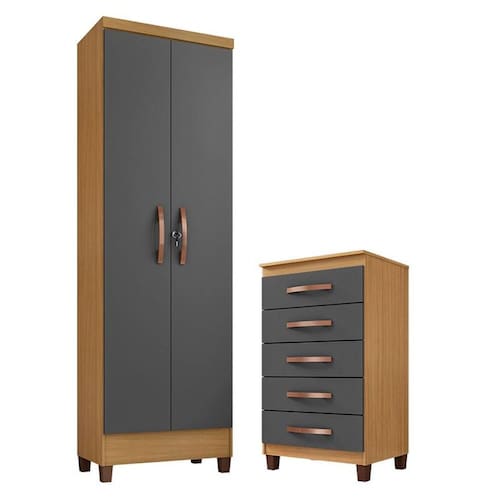 Cômoda Cannes 5 Gavetas e Armário Multiuso Egito Carvalho Americano Grafite – Incorplac
