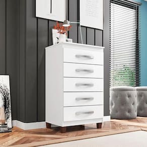 Cômoda Cannes 5 Gavetas - Incorplac Cor Branco A cômoda ideal para você, esta aqui! Apresentamos a Cômoda Gaveteiro da linha Cannes composta por 5 gavetas grandes e espaçosas que iram lhe auxiliar na hora de organizar suas roupas e acessórios, desenvolvida pela Incorplac com materiais de excelentes qualidades para maior durabilidade e resistência do móvel. Não deixe de aproveitar e garantir a sua! Características Técnicas: - Desenvolvido em MDP de 12mm - Acabamento em pintura texturizado - Possui 05 Gavetas suportando 3 Kg cada - Corrediças metálicas que deslizam livres de enrosco - Puxadores em PVC - Peso suportado pelo tampo é de 8 kg - Kit 04 pés de plástico - Lindo design