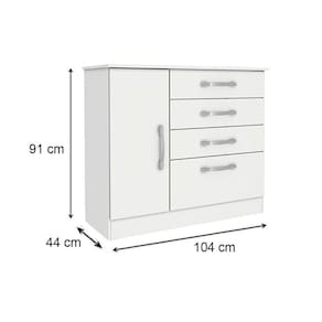 Cômoda Casal Chicago c/ 1 Porta e 4 Gavetas Branco/Neve - Tcil Móveis