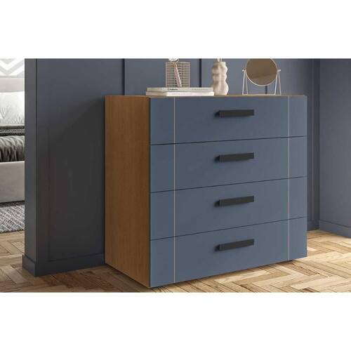 Cômoda de Quarto Lisboa c/ 4 Gavetas Freijo/Azul - Politorno