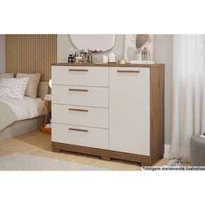 Cômoda Casal Malu 1 Porta 4 Gavetas Avelã/Off White - Panan