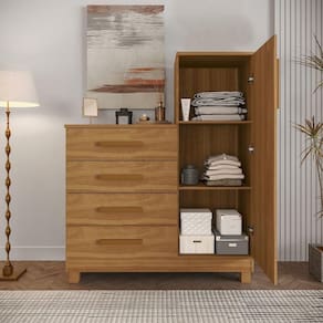 Produzida em MDP de alta qualidade e com acabamento em pintura UV, ela oferece resistência e um visual sofisticado para qualquer espaço da sua casa. Com 4 gavetas espaçosas com corrediças telescópicas, você tem muito mais praticidade e suavidade no dia a dia. Além disso, conta com um compartimento multiuso que pode ser como sapateira ou armário, ideal para quem busca versatilidade. Os puxadores e pés em PVC complementam o design com elegância e durabilidade, tornando este móvel uma excelente escolha para quartos ou salas compactas. A escolha certa para quem quer unir organização, estilo e funcionalidade em um só móvel.
