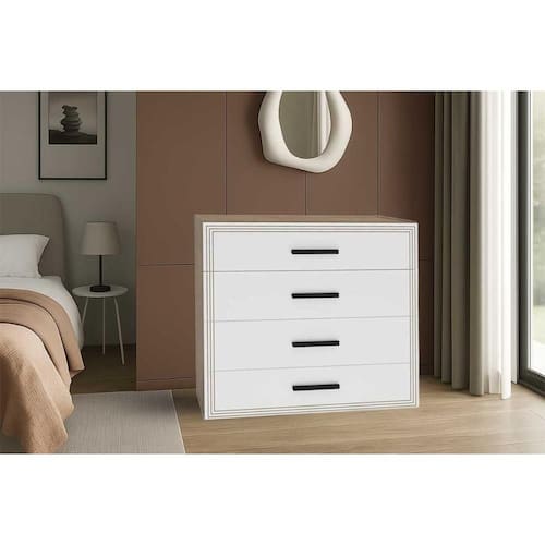 Cômoda de Quarto Valência c/ 4 Gavetas Freijo/Branco - Politorno