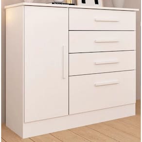 Cômoda Chicago 1 Porta 4 Gavetas Tcil Móveis - Neve Cômoda 4 Gavetas 01 Porta Com Sapateira Chicago Tcil Móveis Comoda ChicagoEncha o espaço com graça, charme e estilo com a Cômoda Chicago.Ela é ideal para decorar o ambiente com bom gosto e, de quebra, organizar e otimizar melhor o cômodo.Tamanho do produto montado: Altura: 91cm Largura: 104cm Profundidade: 44cm.Produto em MDP, 4 gavetas com corrediças telescópicas, sapateira lateral com prateleira, puxadores em PVC.Atenção: a tonalidade da cor pode variar de acordo com o lote do fabricante; e/ou as configurações de seu monitor.Imagens meramente ilustrativas: os objetos que ambientam as fotos não acompanham o produto.Contém 1 unidade do produto anunciado.