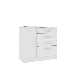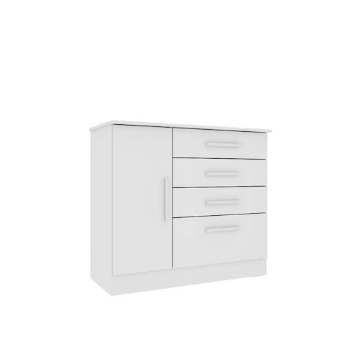 Cômoda Chicago 4 Gavetas 1 Portas Tcil Móveis Aliada da organização do seu dormitório, a Cômoda Chicago é a peça que faltava para garantir um dia a dia mais otimizado e um ambiente bem decorado. Ela pode ter o uso compartilhado com o do guarda-roupa já que as gavetas se reservam para peças menores e dobráveis, mas se o seu cômodo é pequeno, ela também vai bem como a protagonista para deixar tudo sempre à mão. Agora é só combiná-la com o restante do mobiliário e conquistar o quarto dos seus sonhos!EspecificaçõesAltura: 91 cmLargura: 104 cmProfundidade: 44 cmPeso: 36 KgProduto 100% em mdfTampo em mdf 25MMPuxadores em pvcCorrediças telescópicasInformações importantes:- Não nos responsabilizamos pela montagem e instalação dos produtos. A montagem deve ser realizada por um profissional, conforme as instruções do manual do produto. A responsabilidade da montagem é do consumidor.- Os Objetos que ambientam as imagens não acompanham o produto.- Pode haver alguma diferença de tonalidade entre a foto e o produto, devido ao tratamento de imagens e a calibração do seu monitor ou dispositivo.- A entrega é realizada por transportadora, não nos responsabilizamos, no ato da entrega por desmontagens, subir escadas/elevadores ou transporte por guincho para apartamentos. Eventuais despesas são de responsabilidade do consumidor.- Antes de comprar o seu produto verifique as medidas e o local onde pretende instalar.- A entrega é realizada por transportadora, não nos responsabilizamos, no ato da entrega por desmontagens, subir escadas/elevadores ou transporte por guincho para apartamentos. Eventuais despesas são de responsabilidade do consumidor.- Antes de comprar o seu produto verifique as medidas e o local onde pretende instalar.