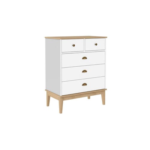 A cômoda MB 1020 possui estrutura em MDP 15mm e acabamento em pintura UV. Costas 3mm. Possui 5 gavetas com corrediças telescópicas, puxadores ponto e concha metálicos e que suportam 5kg cada e 4 pés em madeira maciça com altura de 20cm. Tampo em MDP 15mm. Produto suporta até 30kg. Conteúdo da embalagem: móvel, ferragens e manual de montagem. A fixação das peças e/ou acessórios é feita por parafusos, cavilhas e minifix. Para uma limpeza mais efetiva, utilizar apenas pano macio umedecido e sabão neutro. Não utilizar produtos abrasivos. Garantia de 03 meses contra defeitos de fabricação. Medidas do produto (AxLxP): 90x70x41cm. Peso do produto: 27,9kg.