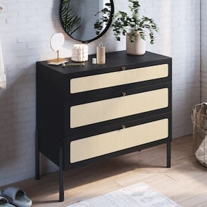 Inspirada no design escandinavo, ela traz um toque suave e aconchegante que transforma qualquer quarto ou closet em um refúgio de tranquilidade. As gavetas, com delicadas telinhas sintética, não só garantem a circulação de ar, como também adicionam um charme artesanal ao seu espaço. Já os pés em madeira maciça oferecem robustez e elegância, elevando sua decoração a um novo patamar. Ideal para organizar suas roupas, acessórios e pequenos objetos, essa cômoda é a solução perfeita para quem busca praticidade sem abrir mão da estética.