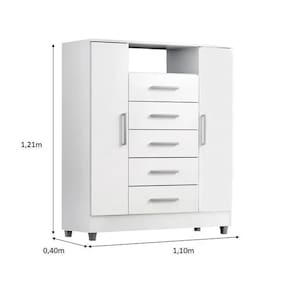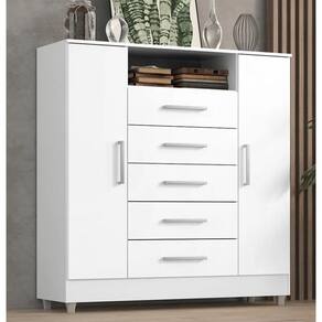 CÔMODA ISABELE| Com 5 gavetas, nicho para perfumes, eletrônicos e 2 portas com 4 prateleiras, dispõe de um design sofisticado é própria para pessoas exigentes com organização. As gavetas possuem CORREDIÇAS METÁLICAS, fazendo assim com que a gaveta não caia na hora que você for utilizar, evitando acidentes com crianças. O móvel suporta pesos de até 7kg em suas gavetas e 20kg no tampo suficiente para acomodar televisores, além disso acompanha pezinhos para melhor limpeza e durabilidade do produto. As gavetas são espaçosas e comportam um bom volume de roupas e acessórios em seu interior. Possui acabamento Touch Alto-Relevo ou Alto Brilho UV e Semibrilho parte interna. Tem um design moderno que ao mesmo tempo atende muito bem as reais necessidades de uma ou duas pessoas.