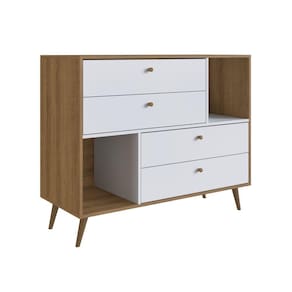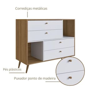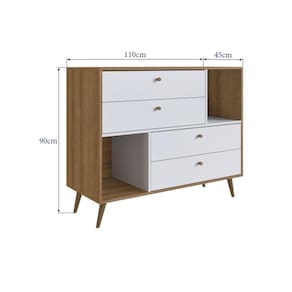 Cômoda com 4 gavetas e 2 nichos 110CM Branco/Mel - Marrom