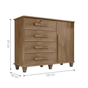 DESCRIÇÃO DO TAMANHO: Altura: 97 cm x Largura: 120 cm x Comprimento: 45 cm | CORES DO PRODUTO (FILTRO DE CORES): Marrom | LARGURA DO PRODUTO (CM): 120 | ALTURA DO PRODUTO (CM): 97 | POSSUI PORTAS: 1 | COR PREDOMINANTE: Cinamomo | PESO PRODUTO COM EMBALAGEM (KG): | ALTURA DO PRODUTO COM EMBALAGEM (CM): | QUANTIDADE DE GAVETAS: 4 | MATERIAL PARA FILTRO: MDF/MDP | MATERIAL PRINCIPAL: MDP | LARGURA PRODUTO COM EMBALAGEM (CM): 47 | COMPRIMENTO PRODUTO COM EMBALAGEM (CM): 122 | PESO DO PRODUTO (KG): | ESTADO DE ORIGEM: SP | CONTEÚDO DA EMBALAGEM: 1 Cômoda | INSTRUÇÕES/CUIDADOS: Limpar com pano macio e seco, não utilizar produtos abrasivos | PRODUTO PRECISA DE MONTAGEM?: Sim, a montagem é simples mas sugerimos a contratação do nosso de montagem (para os CEPs em que o está disponível) ou de algum experiente de sua preferência | MARCA: RV Móveis | PRODUTO: Cômoda | COMPRIMENTO DO PRODUTO (CM): 45