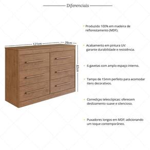 Organize seu quarto com sofisticação e eficiência. A Cômoda com 6 Gavetas 121cm Multimóveis CR35263 foi projetada especialmente para atender às suas necessidades e elevar o design do ambiente.