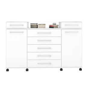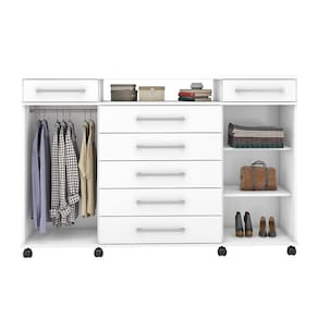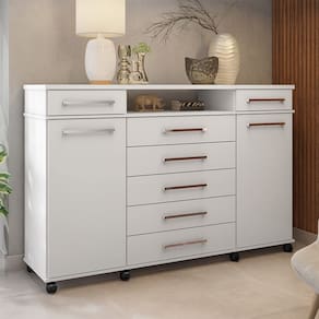 Características: Estrutura em MDP Acabamento em Pintura UV 07 Gavetas com corrediças metálicas 02 Portas com dobradiças metálicas Puxadores em Plástico ABS Possui Rodizíos.