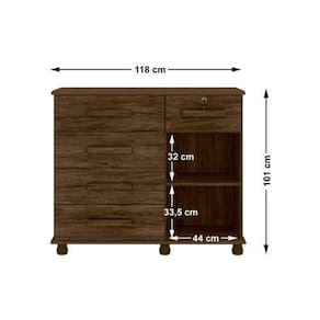 Dimensões (AxLxP)Altura: 101 cm, Largura: 118 cm, Profundidade: 45 cm, Estrutura em MDP 15 mm, Porta em MDP 15 mm, Frente e Lateral da Gaveta em MDP 15 mm, Tampo em MDF 25 mm, Pés em Madeira Pinus, Corrediças Telescópicas, Dobradiças Metálicas, Puxadores em MDF, Possui Gaveta com Chave, Acabamento Fosco.