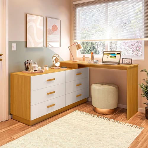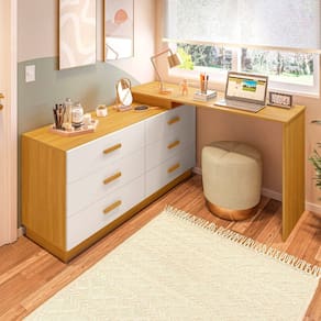 A Cômoda com Escrivaninha Leonie é perfeita para melhorar sua experiência do dia a dia, tanto no aconchego do seu quarto quanto em um ambiente de escritório, pois foi desenvolvida para entregar o que há de mais prático e simples para suas rotinas diárias.