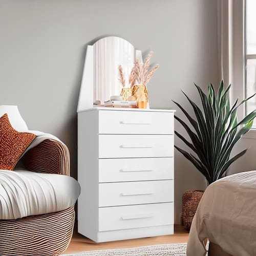 5 Gavetas com Corrediças Metálicas: Proporcionam um deslizamento suave e silencioso, garantindo acesso fácil e organizado aos seus pertences.