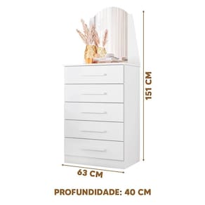 Dimensões da Cômoda: Largura 63 cm; Profundidade 40 cm; Altura 151 cm.