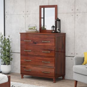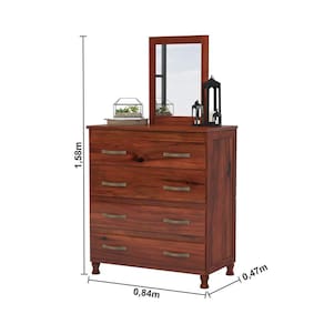 Cômoda com Espelho e Pés 4 Gavetas Lisboa Lanes Móveis Mogano - Marrom