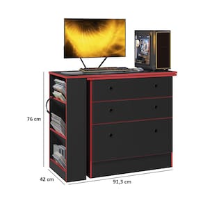 Estrutura em MDP Revestido em Pintura UV Abertura de 90° para melhor aproveitamento da mesa Rodízio na base para auxiliar a movimentação 03 gavetas sendo um gavetão com amplo espaço Prateleira lateral para acomodar livros e demais objetos Móvel multifuncional, podendo ser utilizado aberto como mesa ou fechado como cômoda.