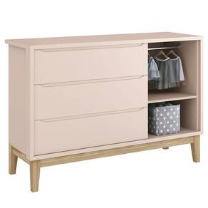Cômoda Infantil New Classic com Porta Rosa com Pés Madeira Natural – Reller