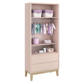 Cômoda com Porta e Guarda Roupa Infantil 2 Portas New Classic Rosa com Pés Madeira Natural - Reller