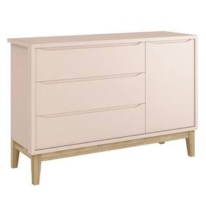 Cômoda Infantil New Classic com Porta Rosa com Pés Madeira Natural Reller