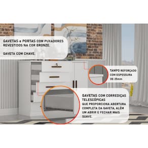 Particularidades da Cômoda: Características: - Produzido com MDF e MDP - 5 Gavetas com corrediças telescópicas - Sapateira - Puxadores em alumínio bronze - Tampo reforçado de 25mm - Gaveta com chave de segurança