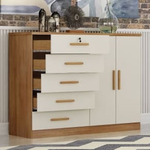 Com a Cômoda Space seu quarto estará completo e seus pertences bem organizados, uma aliada na organização de seu quarto. Fabricada em MDF e MDP, possui 5 gavetas com corrediças telescópicas e sapateira ampla. As corrediças telescópicas são feitas de aço e por isso são mais resistentes e duráveis, permitindo um deslize suave e uma abertura total da gaveta. Agora é só combiná-la com seu mobiliário e conquistar o quarto dos seus sonhos! Aproveite!