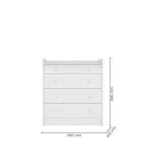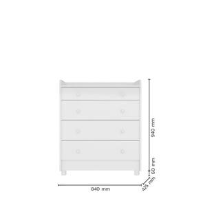 Além do design encantador, a cômoda oferece funcionalidades essenciais, como pés opcionais para preservar o produto, bordas com perfil PVC, trocador embutido para maior praticidade e sistema antitombamento para a segurança do seu pequeno. Adquira agora a Cômoda Com Trocador e 4 Gavetas Encanto Feliz e transforme o quarto do seu bebê em um espaço mágico e irresistível!
