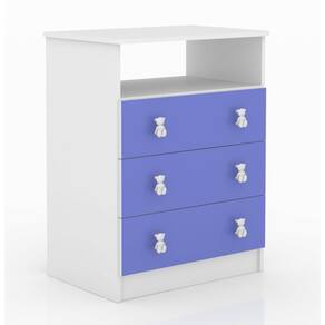 Cômoda de Bebê 3 Gavetas 1 Nicho Arco-íris DJD Móveis Branco/Azul. A cômoda Arco-íris DJD chega para deixar o quarto do seu bebê ainda mais charmoso e completo. Ela tem 3 espaçosas gavetas e um nicho para facilitar a vida de papais e mamães. É produzida em MPD com corrediças metálicas e lindos puxadores em forma de ursinho. Ean: 7908506276352