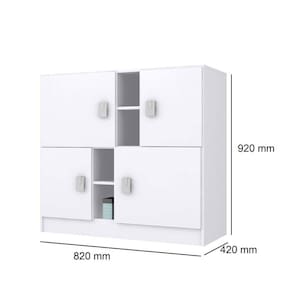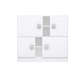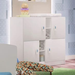 Cômoda 4 portas, fabricada em mdp bp branco 15 mm (nas laterais), acabamento lacca nas portas. Puxador na cor branca com detalhes em branco, rosa e azul. Ideal para quarto infantil, possuindo excelente espaço interno. Produto Montado: Sim Acabamento da Porta: Laca Acompanha a Almofada: Não Ambiente Principal: Quarto Infantil codigo_ean: 7898519567380 Complexidade da Montagem: Média: pode ser montado por mais de uma pessoa e/ou necessite de maior conhecimento para montagem Cor: Branco Cor: Branco Cor do Produto: Branco Cor Interna: Branco Escala de Brilho: Brilhante Escala de Brilho da Gaveta: Brilhante Escala de Brilho da Porta: Brilhante Escala de Brilho da Prateleira: Brilhante Gaveta com Chave: Não Itens Inclusos: Cômoda e manual de montagem. Material da Gaveta: MDP Material da Porta: MDP Material da Prateleira: MDP Material do Fundo: T-HDF Material do Puxador da Gaveta: Plástico Material do Puxador da Porta: Plástico Material dos Pés: MDP Material Principal: MDP Necessita Montagem: Sim Peso: 39,5 kg Possui Espelho: Não Possui Nichos: 04 Possui Pés: Não Possui Portas: Sim Possui Prateleiras: Não Possui Rodízio: Não Possui Trocador: Não Recomendações de Uso, Manutenção e Limpeza: É recomendado pano macio para limpezas do dia-a-dia e pano úmido para tirar a poeira. Sapatas Niveladoras: Não Sistema de Montagem: Parafusos e Cavilhas. Tipo de Dobradiça/Corrediça da Porta: Metálica Tipo de Porta: Bater Tipo de Puxador da Gaveta: Externo Tipo de Puxador da Porta: Externo Ean: 7898519567380