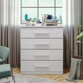 A Cômoda 4 Gavetas Baião Lopas tem design moderno e minimalista, ideal para guardar roupas e objetos pessoais. Possui 04 gavetas com corrediças telescópicas, que oferecem mais segurança ao abrir as gavetas, evitando que elas saiam completamente do móvel. Essa cômoda para quarto possui tampo de 25 mm, um material resistente, que suporta colocar televisores ou até mesmo aparelho de som. Já os puxadores em MDF, trazem um visual discreto e elegante ao produto. A cômoda com gavetas Baião Lopas é fabricada com madeira MDP, uma estrutura de alta durabilidade que concilia praticidade para montar e desmontar o móvel garantindo sua vida útil. Essa cômoda de madeira com pintura em U.V. e acabamento em alto brilho, tem um teor de resistência elevado, além de proporcionar mais agilidade no dia a dia facilitando a limpeza. Preencha seu quarto com graça, charme e estilo com a Cômoda 4 gavetas Baião Lopas. Cor: Branco Cor: Branco