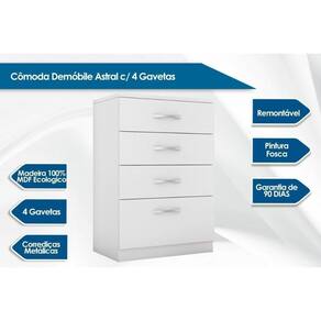 Cômoda de Quarto Astral c/ 4 Gavetas Ébano Touch - Demóbile