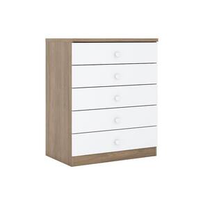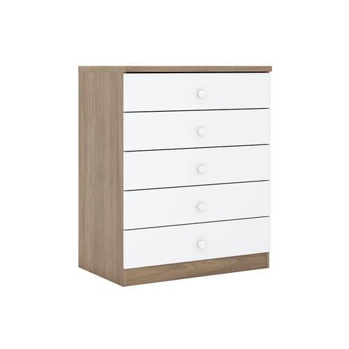 Cômoda de Quarto Bala Menta c/ 5 Gavetas Rústico/Branco - Henn