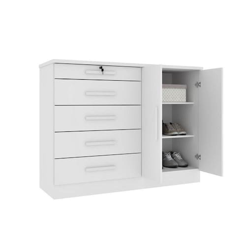 Cômoda De Quarto Istambul 2 Portas E 5 Gavetas Neve - Tcil Móveis