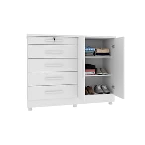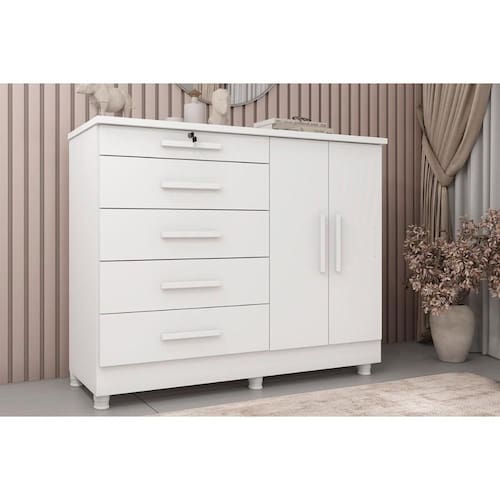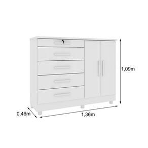 Cômoda de Quarto Istambul c/ 2 Portas 5 Gavetas e Pés Neve - Tcil Móveis - Branco