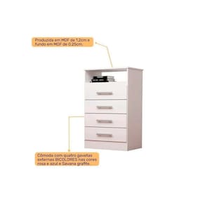 Tipo de Corrediça - c/ Corrediças Metálicas Quantidade de Gavetas - 4 Gavetas Quantidade de Prateleiras - 1 Prateleira Quantidade de Nichos - 1 Nicho